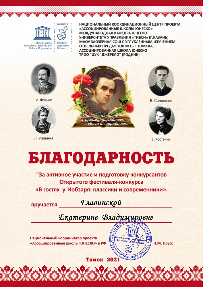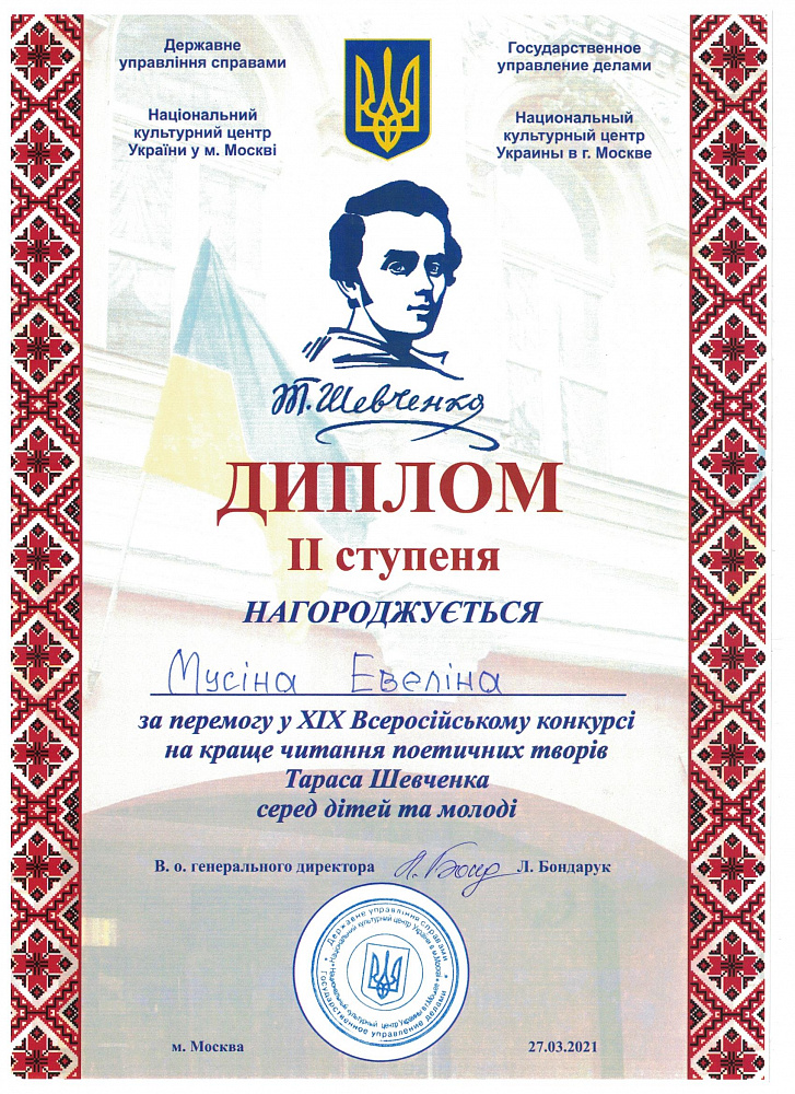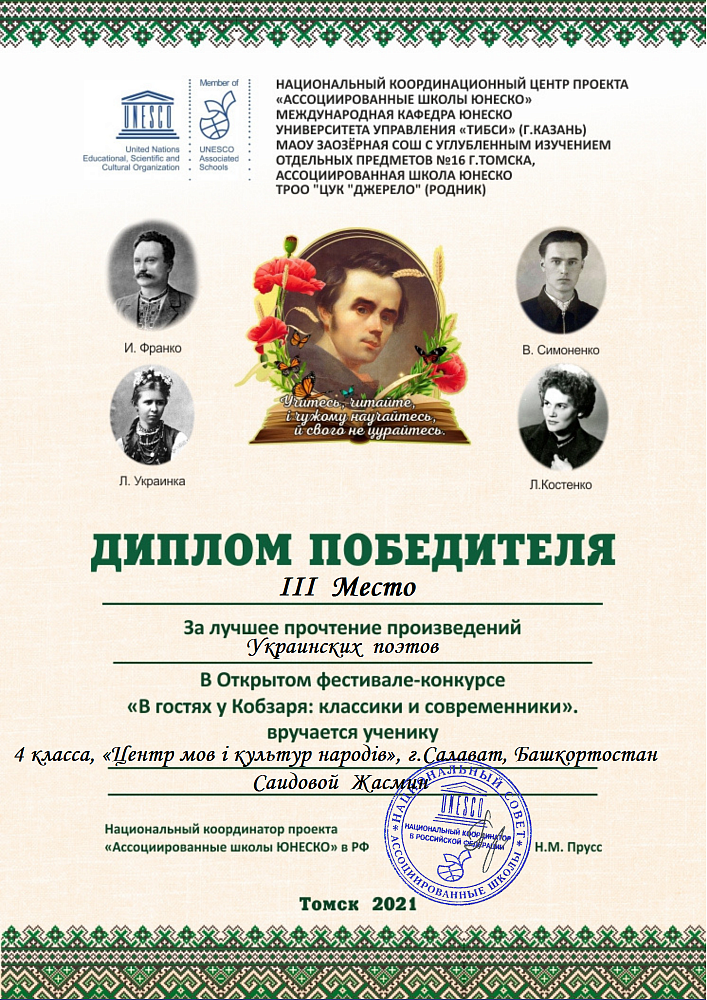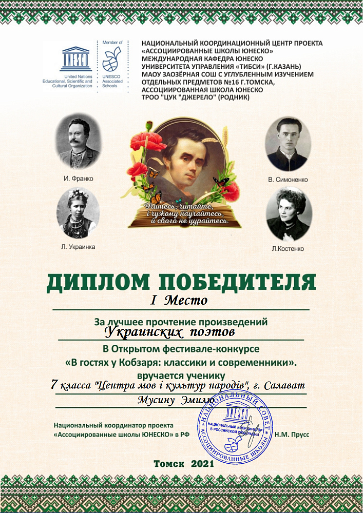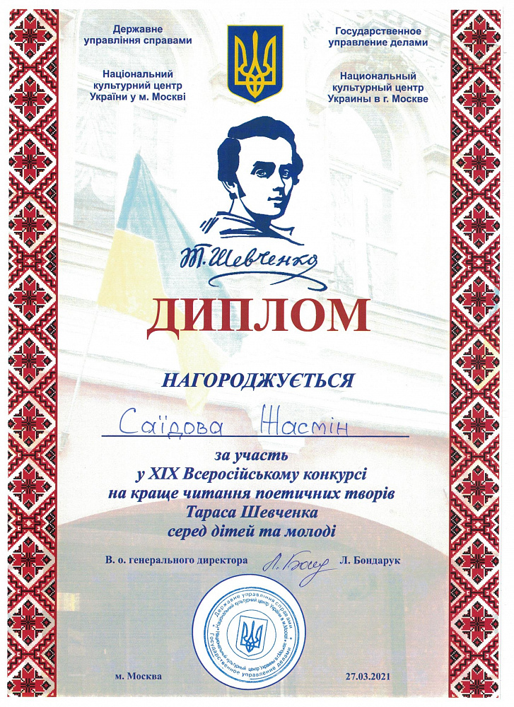 XIX Всероссийский конкурс на лучшее чтение поэтических произведений Тараса Шевченко среди детей и молодежи