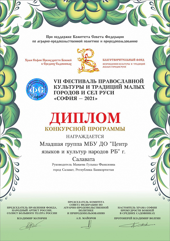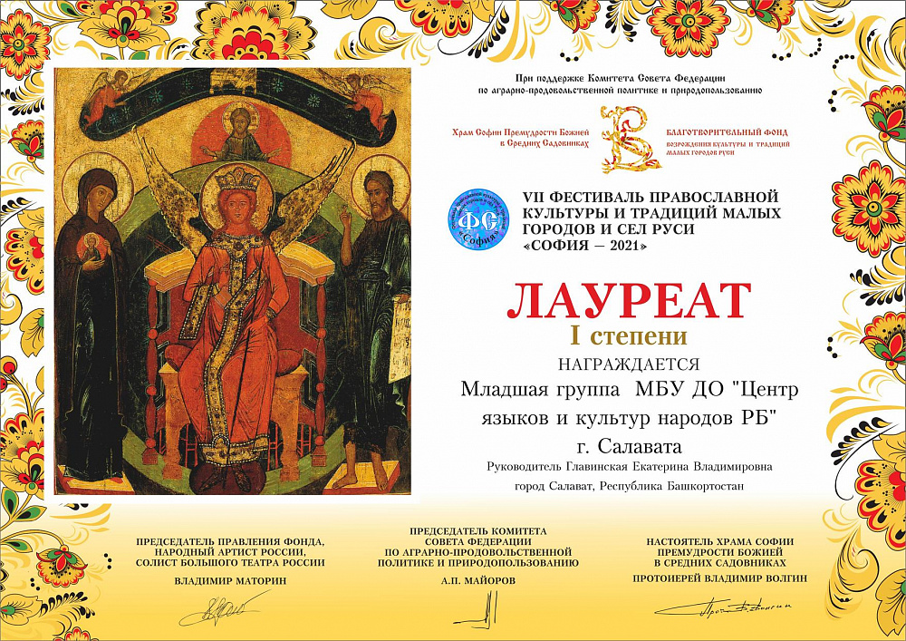 Фестиваль православной культуры и традиций малых городов и сел Руси «София -2021»